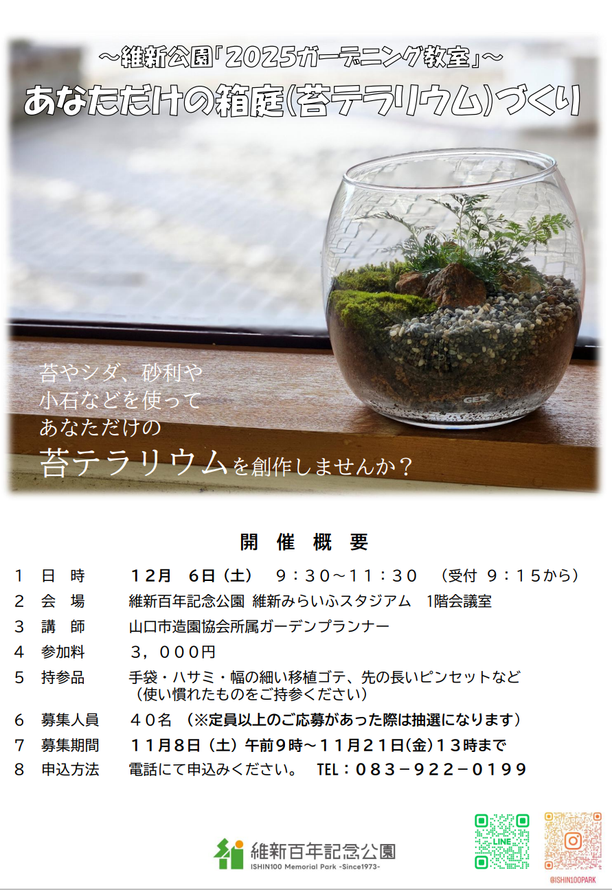 維新公園「2025ガーデニング教室」 あなただけの箱庭(苔テラリウム)づくり 参加者募集