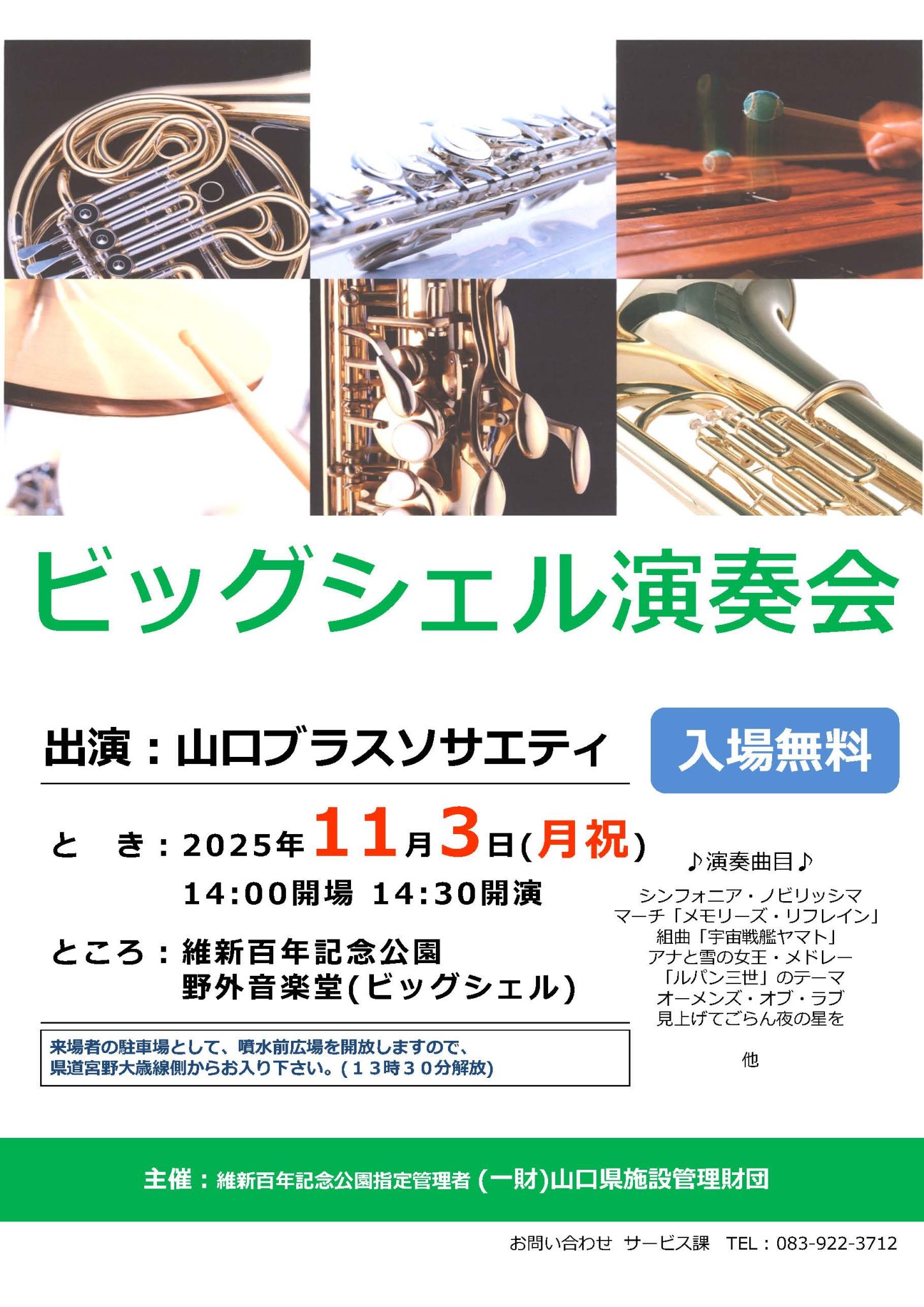 「ビッグシェル演奏会(山口ブラスソサエティ)」を開催しますので、みなさんのお越しをお待ちしています。